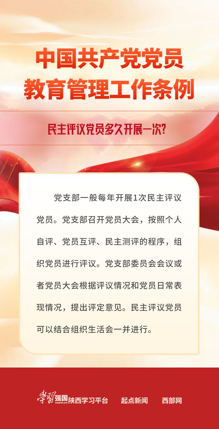 【学习卡片】《中国共产党党员教育管理工作条例》:民主评议党员多久开展一次?