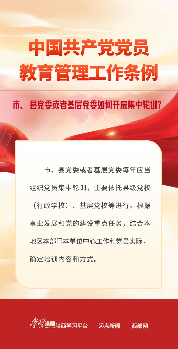 【学习卡片】《中国共产党党员教育管理工作条例》:市、县党委或者基层党委如何开展集中轮训?