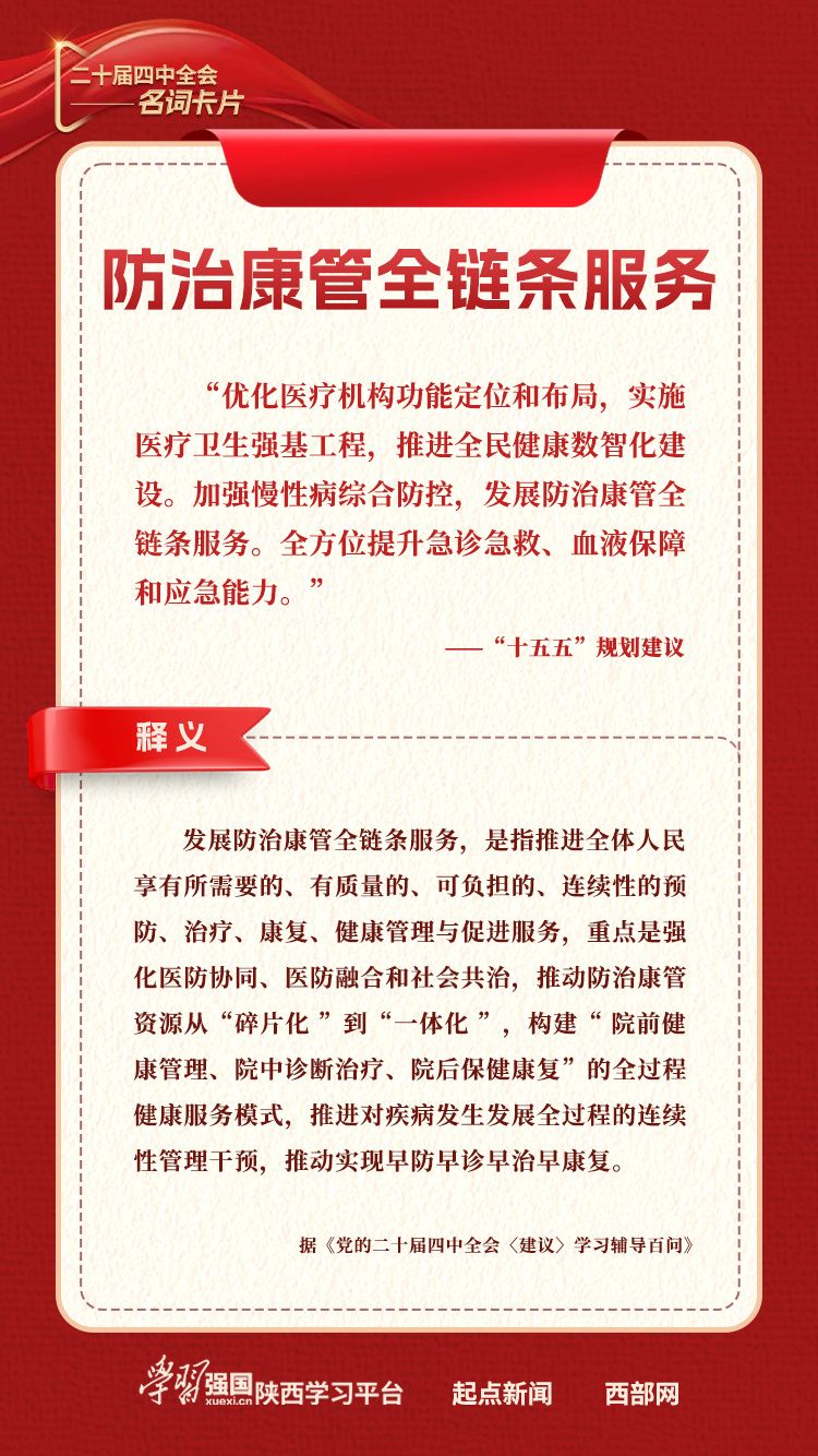 【学习卡片】二十届四中全会名词卡片:防治康管全链条服务