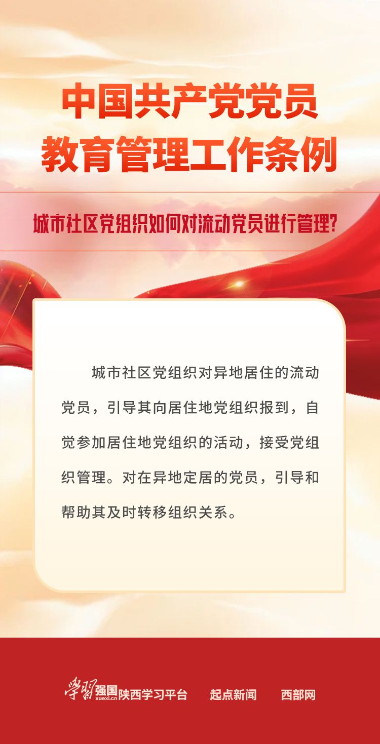 【学习卡片】《中国共产党党员教育管理工作条例》:城市社区党组织如何对流动党员进行管理?