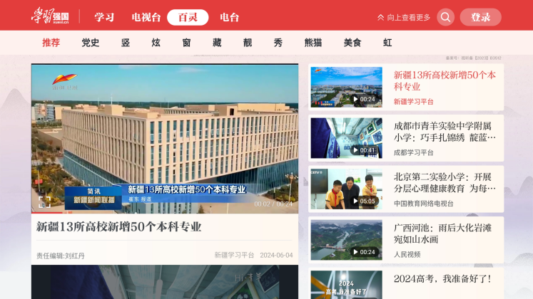 “强国TV”整合学习平台海量权威学习资源