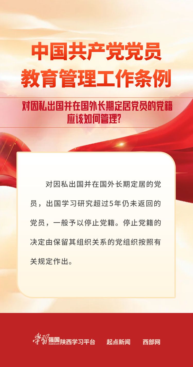 【学习卡片】《中国共产党党员教育管理工作条例》:对因私出国并在国外长期定居党员的党籍应该如何管理?
