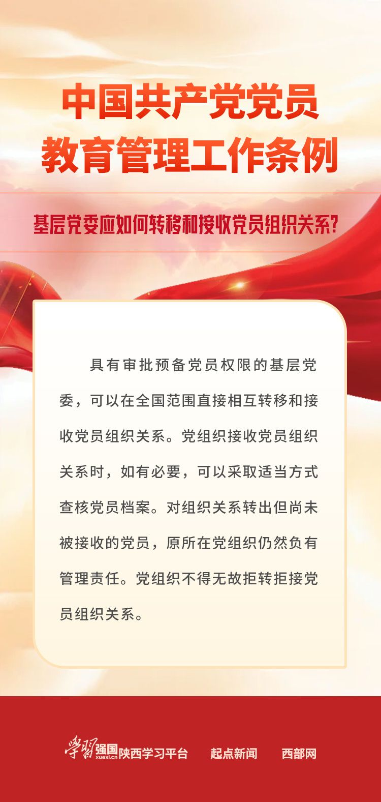 【学习卡片】《中国共产党党员教育管理工作条例》:基层党委应如何转移和接收党员组织关系?