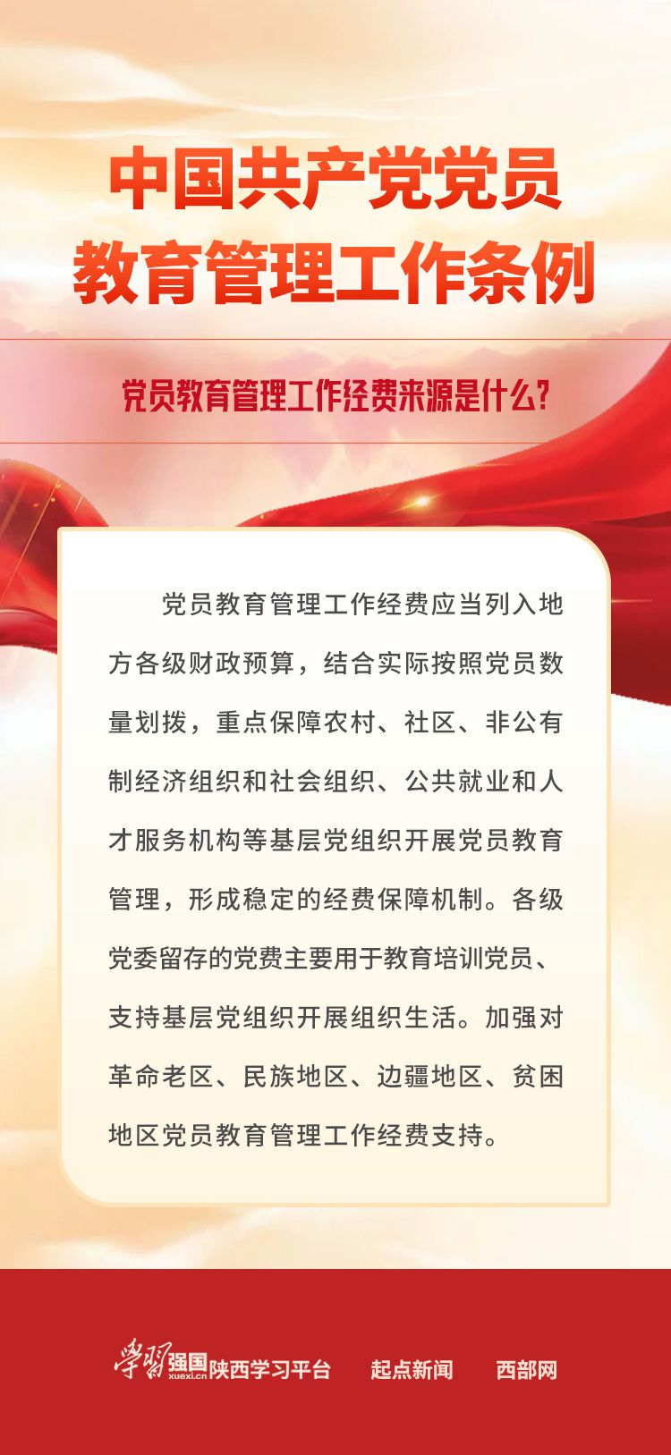 【学习卡片】《中国共产党党员教育管理工作条例》:党员教育管理工作经费来源是什么?